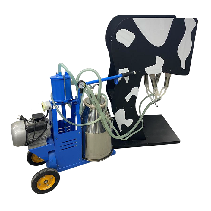 Тренажер должен представлять собой специализированную стойку с установленной на ней полномасштабной моделью вымени КРС и емкостью для циклической работы тренажера, вмонтированной в модель вымени. Модели вымени и сосков должны быть реализованы по характеристикам, отвечающим требованиям машинного доения. В модель вымени должны быть вмонтированы также обратные клапана, рассчитанные на давление, создаваемое аппаратом добровольного доения.
