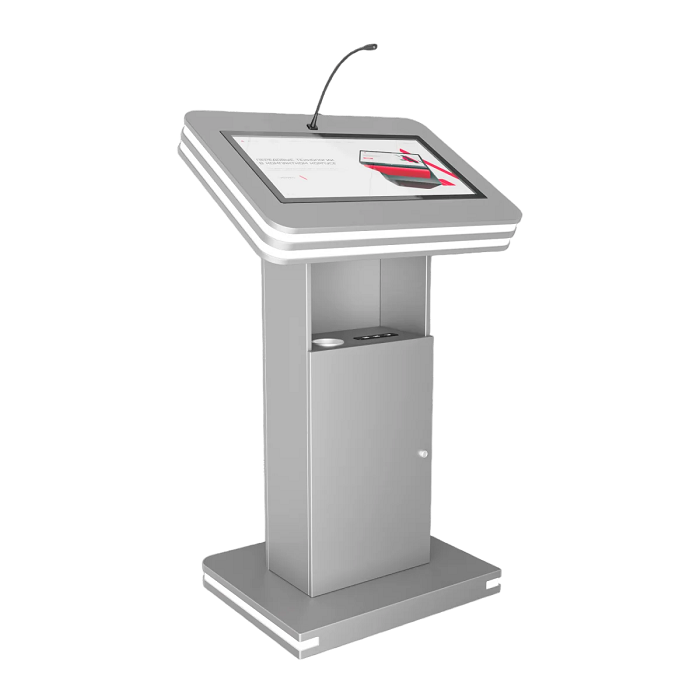 Интерактивная трибуна Light 27" — стильная модель, которая украсит любой бизнес-форум и конференцию. Встроенные микрофоны передают звук на большую аудиторию, удобный интерактивный дисплей с мультитач-системой позволяет отображать необходимую информацию не только для спикера, но и для зрителей, передавая ее на большой экран. Помимо этого, в трибуне есть полочка для воды, а также внешние разъемы. Яркий дизайн корпуса со светодиодным узором не сможет оставить никого равнодушным.