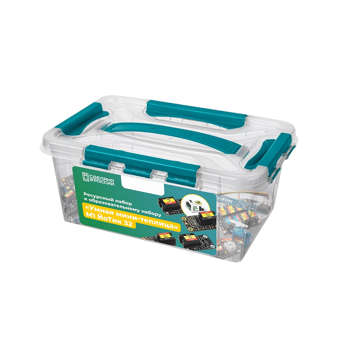 Ресурсный набор для образовательного набора «Умная мини-теплица» М1 ЙоТик 32 предназначен для тех, кто хочет углубленно освоить полный цикл технологии умного выращивания растений. Данный комплект помогает пройти путь от простого знакомства с возможностями умной теплицы до полноценной разработки собственной системы мониторинга и автоматического управления микроклиматом роста растений.